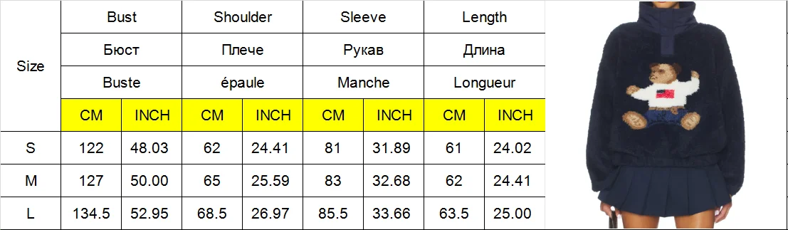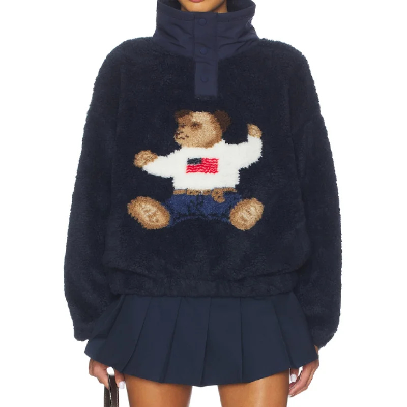 Women's Sweatshirts Cute Bear Pattern Blouses High Collar Warm Polar Fleece Sweater Soft Tops 2025 New Winter Lady Y2K Clothes