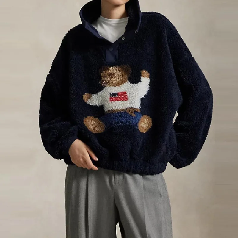Featuring a charming bear pattern, this sweatshirt adds a touch of whimsy to any outfit.